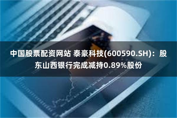 中国股票配资网站 泰豪科技(600590.SH):股东山西银行完成减持0.89%股份